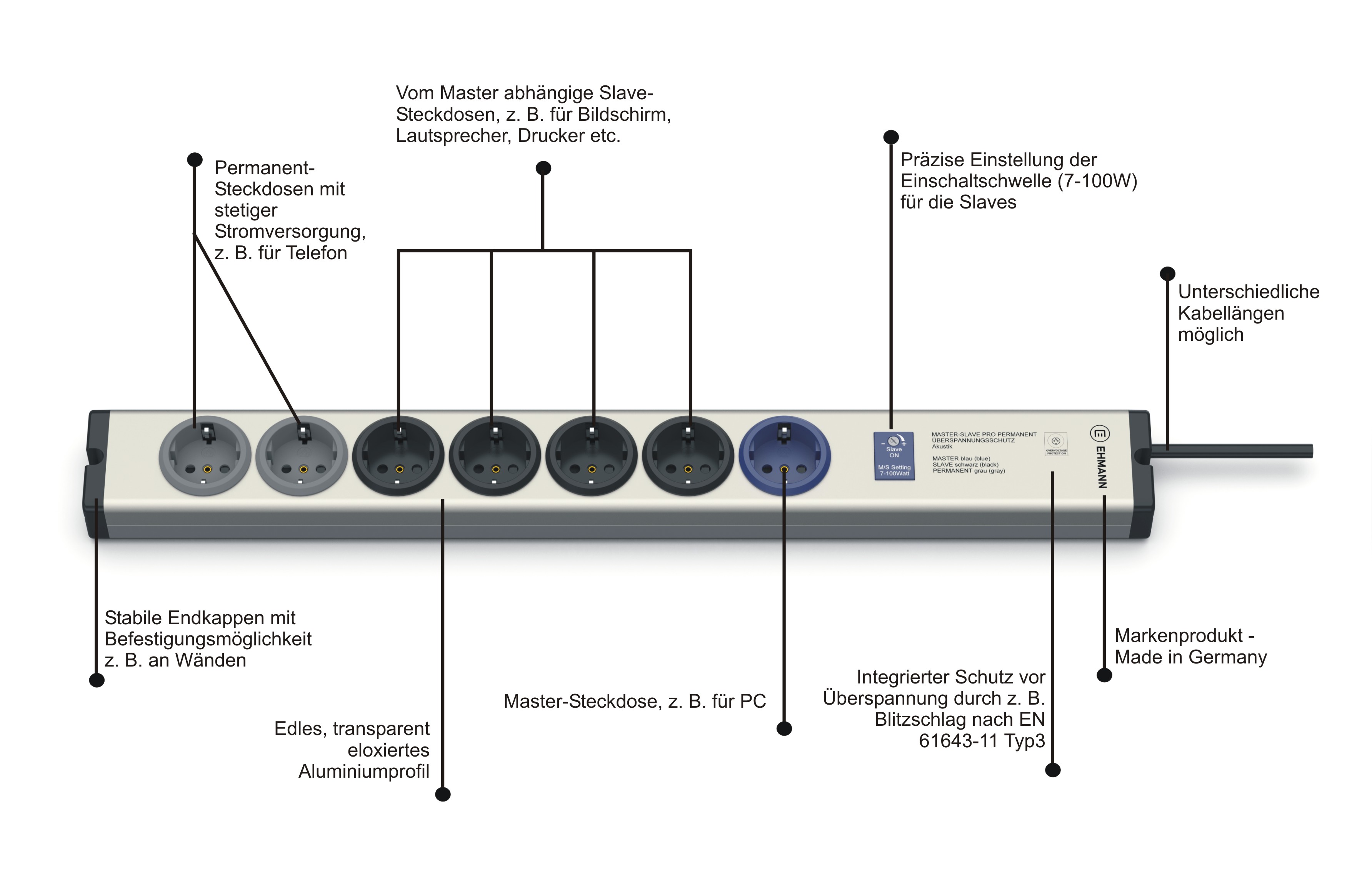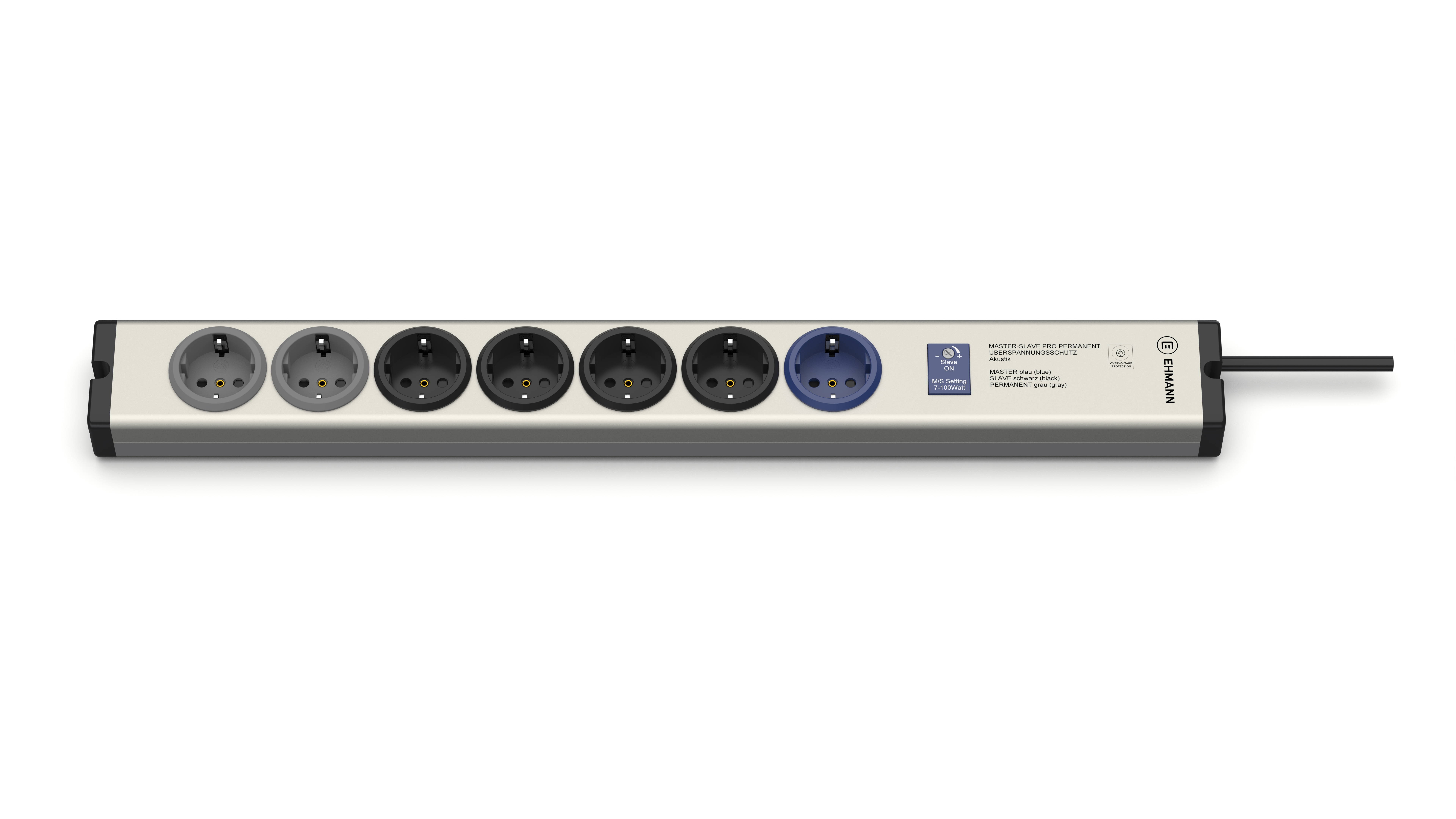 Produktinformationen "Aluminium Master-Slave PRO Steckdosenleiste 5+2-fach mit Überspannungsschutz"