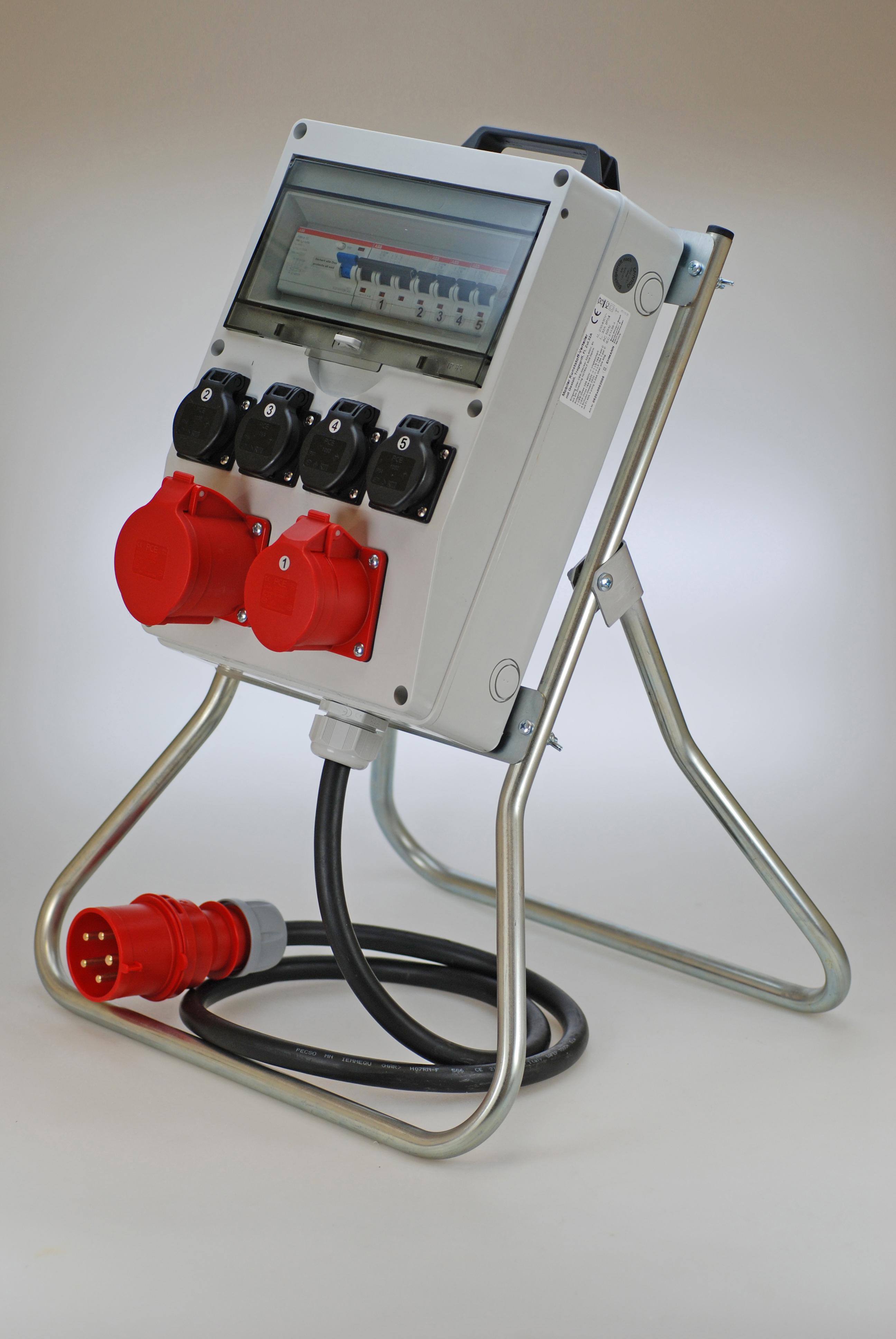 - AUSSTATTUNG Der Vollgummiverteiler bietet 6 Anschlüsse: 1 x CEE 32 A, 400V~ / 1 x CEE 16 A, 400V~ / 4 x 16 A Steckdose 230 V~. Zuleitung: 2m H07RN-F 5G 6,0 mm² mit 32A/400V CEE-Stecker.