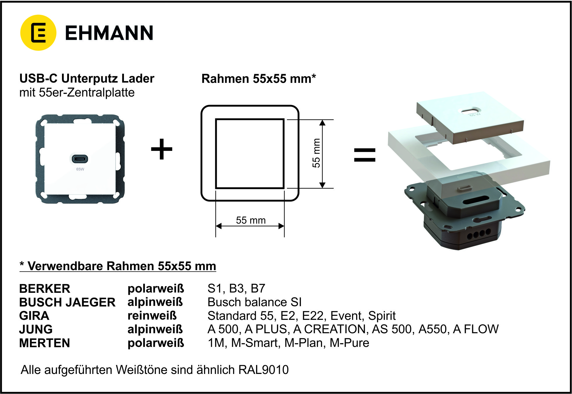 Produktinformationen "Unterputz USB-Ladestation mit USB-C 65 Watt Charger "